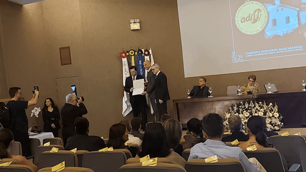 A noite de 27 de novembro marcou mais um capítulo importante na história da FIEMG Regional Zona da Mata. A entidade foi homenageada com a Comenda Bernardo Mascarenhas 2025, uma tradicional honraia concedida pela Agência de Desenvolvimento de Juiz de Fora e Região (ADJFR). A cerimônia, realizada no auditório da Faculdade Suprema, em Juiz de Fora, integrou as comemorações pelos 29 anos da Agência e reuniu autoridades, lideranças empresariais, educacionais e institucionais em um ambiente carregado de simbolismo e reconhecimento.