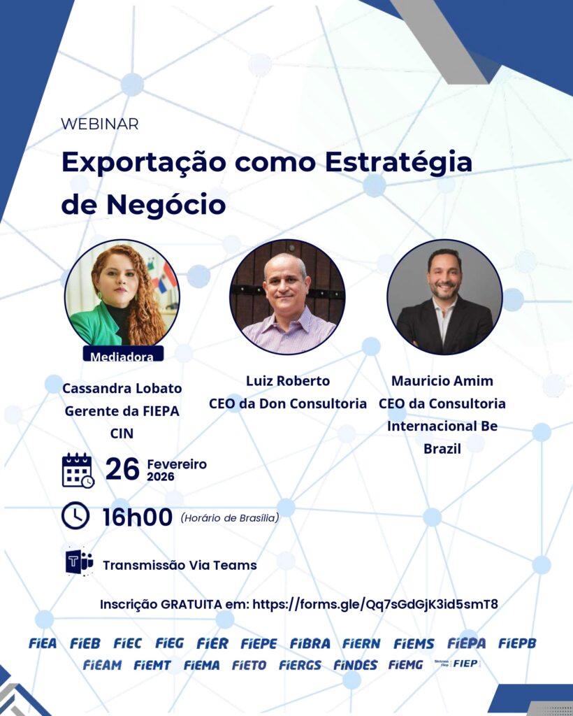 O Centro Internacional de Negócios (CIN) da Federação das Indústrias de Minas Gerais (FIEMG) deu início às capacitações que serão feitas ao longo de 2026. A primeira delas será o Webinar de lançamento: exportação como Estratégia de Negócio. O evento será no dia 26 de fevereiro, próxima quinta-feira, às 16h, com o formato 100% online.