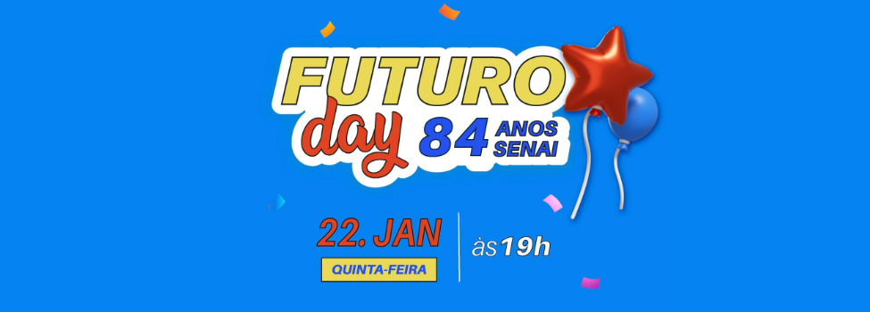Para celebrar seus 84 anos de atuação na formação profissional e no fortalecimento da indústria brasileira, o SENAI promove, nesta quinta-feira (22), o Futuro Day, uma ação especial com promoções exclusivas em cursos técnicos. Ao longo do dia, das 9h às 19h, serão divulgadas novas ofertas a cada hora, todas disponíveis no Futuro.Digital, plataforma oficial da instituição.