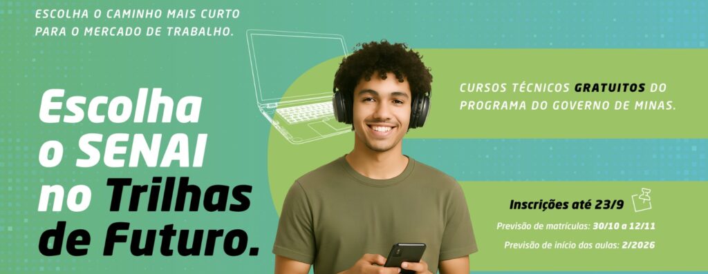 Estão abertas até o dia 23 de setembro as inscrições para a 6ª edição do Trilhas de Futuro, maior programa de qualificação técnica do Governo de Minas. A iniciativa oferece cursos técnicos gratuitos para estudantes e egressos do ensino médio da rede pública e contará, mais uma vez, com a participação do SENAI, referência em formação profissional e inserção no mercado de trabalho. Atualmente, mais de 91% dos alunos formados nos Cursos Técnicos pela instituição estão empregados.