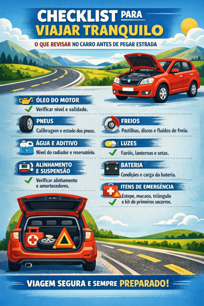 Marcus destaca ainda que, antes de viajar, o motorista deve fazer uma revisão minuciosa no automóvel. “Conferir o nível de óleo fluido do veículo é o mínimo antes de sair para a viagem. Avaliar se a manutenção vai durar a quilometragem de ida e vinda do trajeto, conferir farol e lanterna, pneu, suspensão, sistema de freio, motor e transmissão. Não se esquecendo de conferir se a documentação do carro e do motorista está em dia, e estar com o manual do veículo sempre no porta luvas, caso haja uma situação de emergência e seja preciso parar na estrada”, salienta.