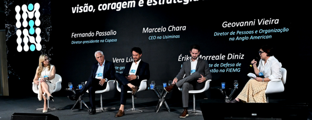 A visão de futuro que inspira e direciona para o futuro foi destaque no painel “Liderança que Move: Visão, Coragem e Estratégia na Alta Gestão” foi destaque do Imersão Indústria – maior evento do setor produtivo de Minas Gerais na noite de 16 de outubro. O painel foi mediado pela hiperintendente da FIEMG, Érika Morreale.