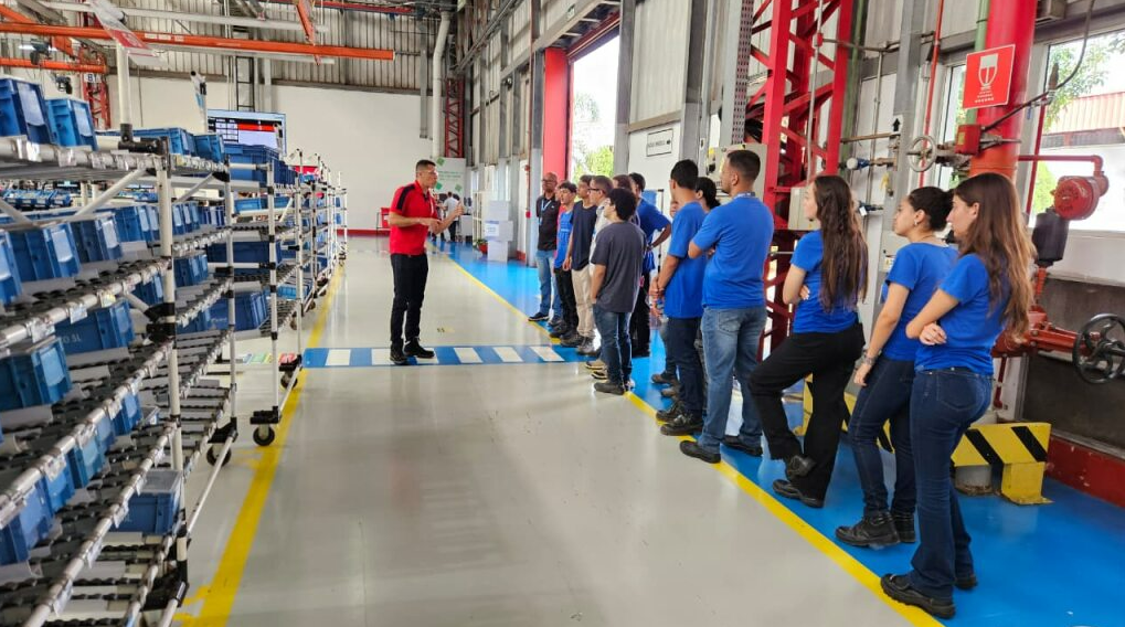 Entre as atividades realizadas, destacaram-se os briefings técnicos sobre produção de motores, apresentações dos próprios alunos com resultados relacionados à descarbonização, além de visitas guiadas às linhas de montagem. Os participantes também puderam observar de perto práticas de logística, eficiência operacional e segurança industrial, fortalecendo a conexão entre a formação técnica e a realidade do setor produtivo.